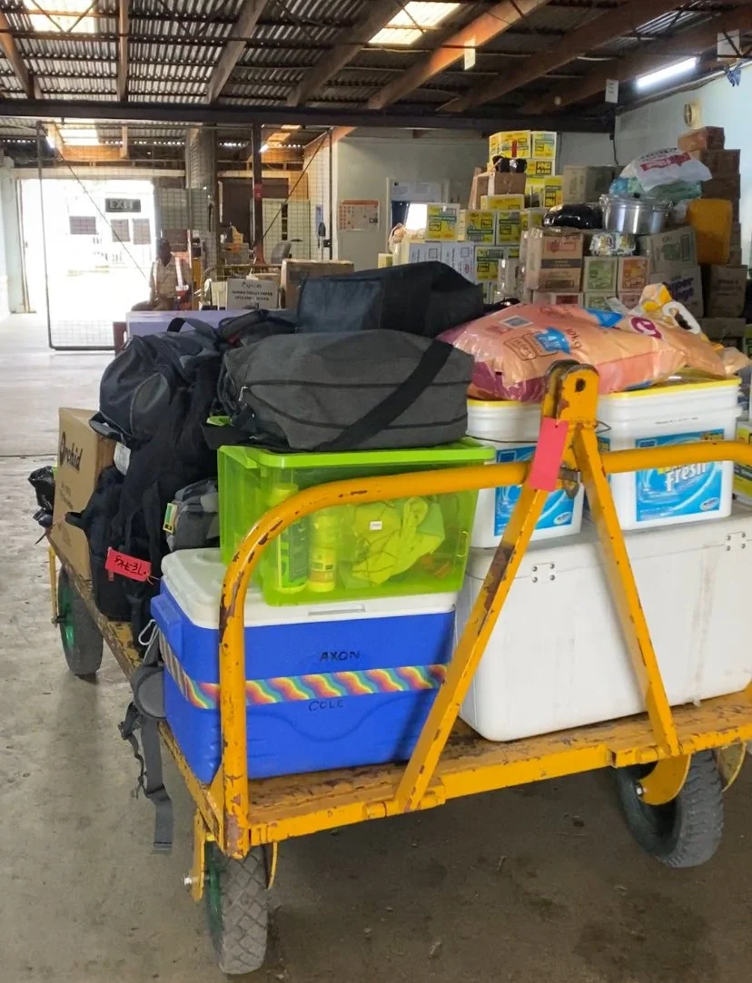 The last eskis/cool boxes to be loaded which contained frozen meat, butter, cheese and some frozen baked goods hand-made by the kids of some MAF friends in Goroka!